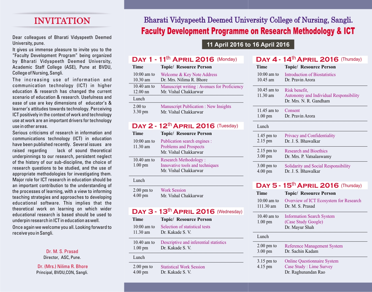 Click here for detailsFaculty Development Programme on Research Methodology and ICT