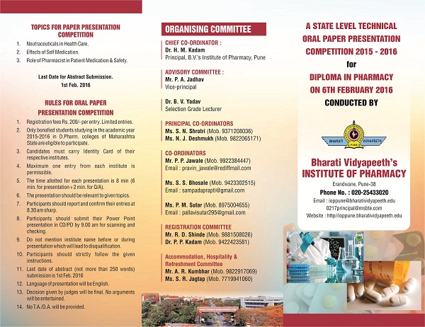 A State Level Technical Oral Paper Presentation Competition 2015-2016 for Diploma In Pharmacy on 06th Feb 2016