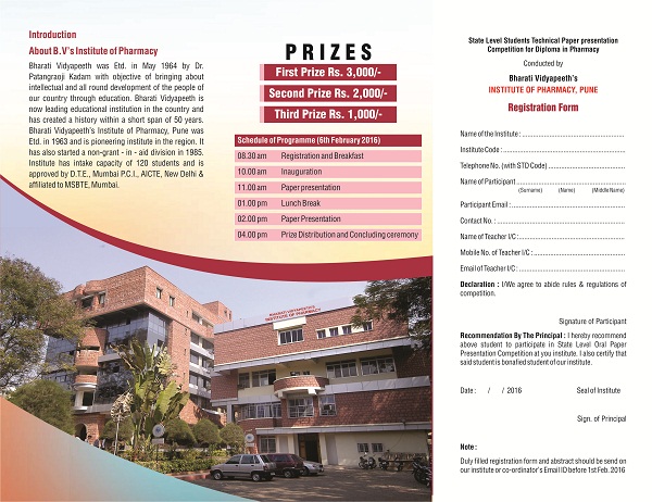 Bharati Vidyapeeth’s Institute of Pharmacy Organized "A State Level Technical Oral Paper Presentation Competition "