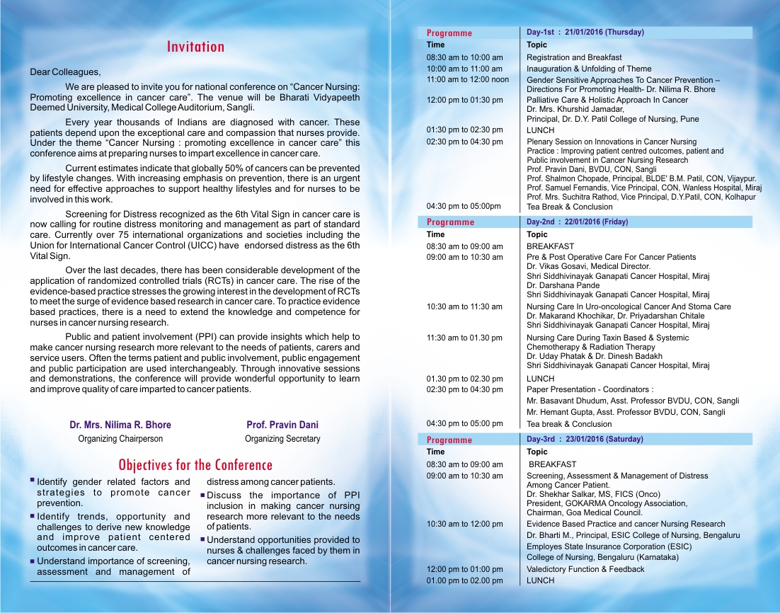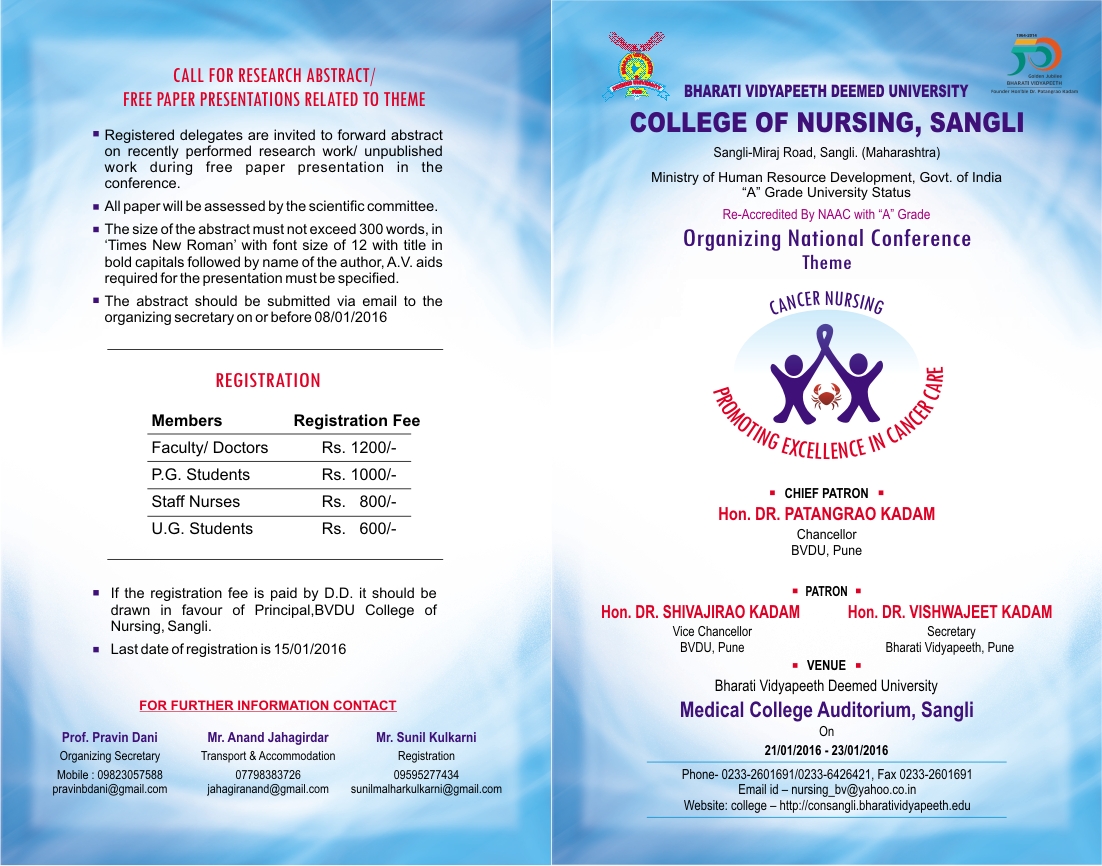 College of Nursing Sangli Organizing National Conference on "Cancer Nursing"